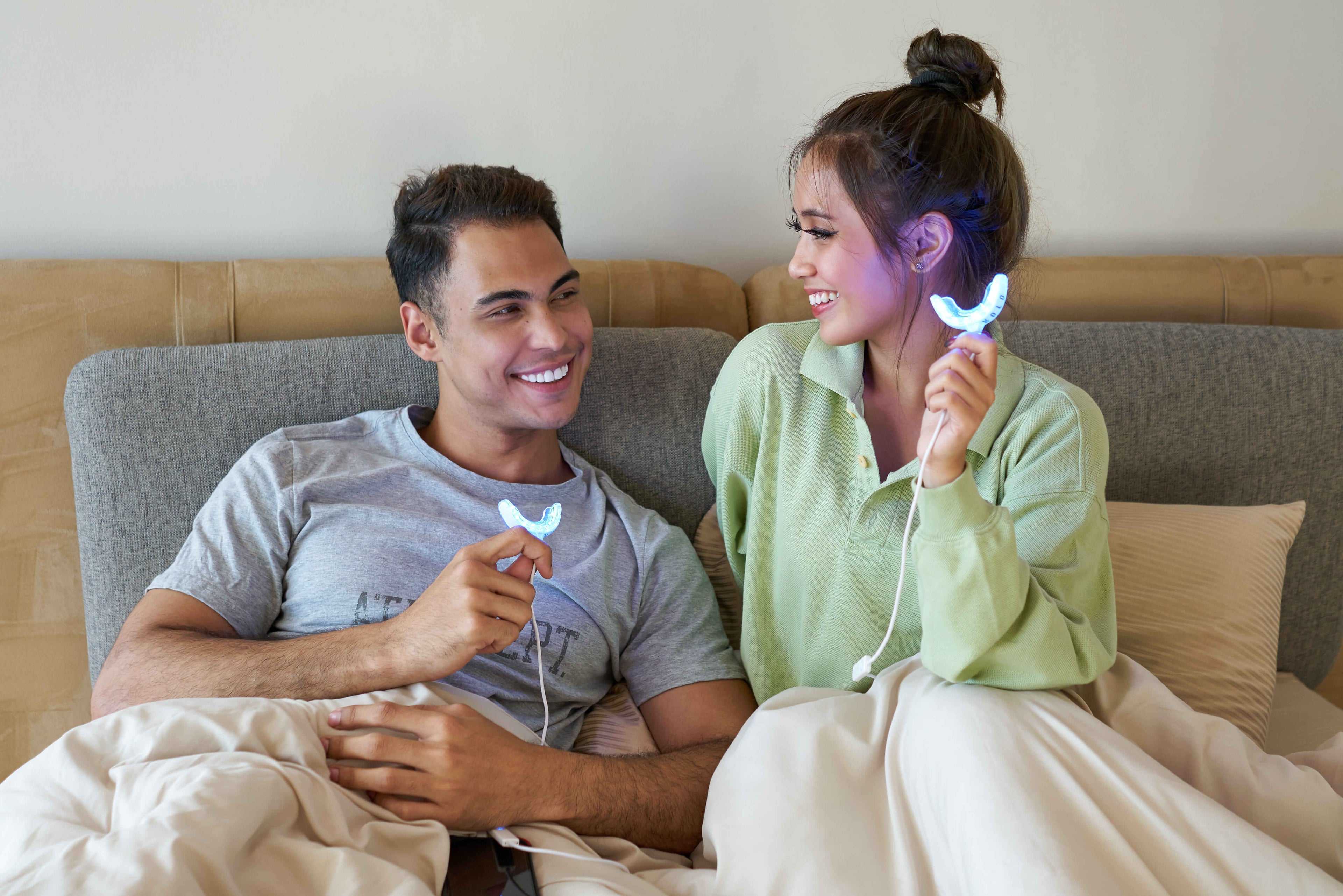 it's simple: apply the gel, wear the mouthpiece for 16 minutes, and see your new smile.