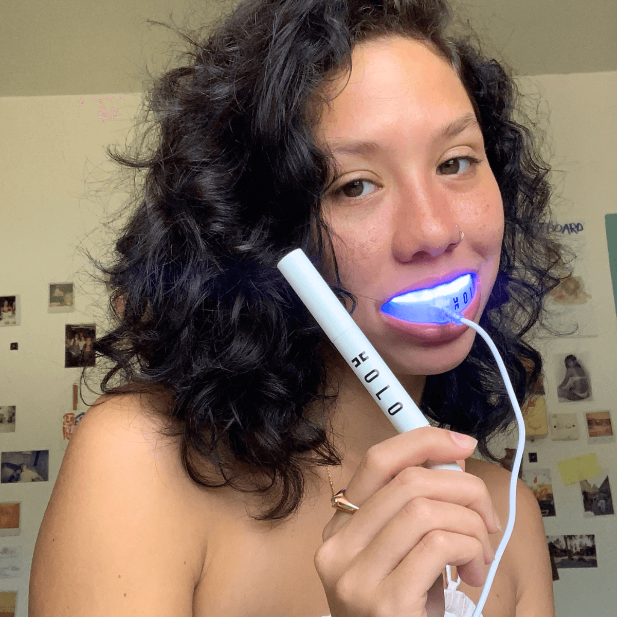 Holo doesn’t simply cover stains, it removes years worth of teeth stains. After using the Holo Teeth Whitening Kit, you can expect the maximum whiteness to last about 3-4 weeks without maintenance. Over time, our teeth naturally stain due to factors like the food and drinks we consume, as well as our age and lifestyle. To maintain your results, we recommend using the kit once a week, or as often as you like. This will help keep your smile bright and white for longer. You can also use Holo Teeth Whitening Strips to give your smile a boost.